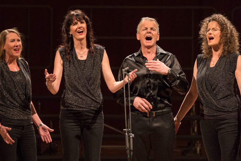 Die „Klangküsse“ sind drei unbeirrbare Frauen und ein flexibler Bass. Das vielfach ausgezeichnete A-cappella-Ensemble ist im Raum Bonn/Siegburg zu Hause.